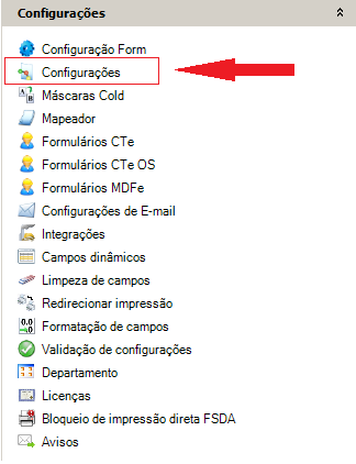 •Formulários CT-e: Serão apresentados todos os formulários previamente cadastrados no e-Forms e-Connector Settings.
