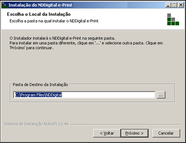 Passo 3: Diretório de instalação: Defina em que local será instalado o software e clique em Próximo.