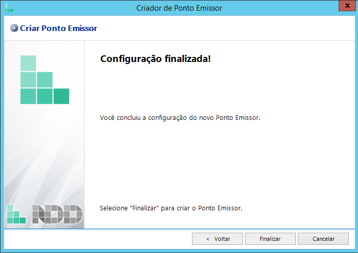 Clique em finalizar para terminar o cadastro do Ponto emissor.