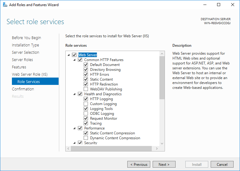 Passo 1: Abaixo, as características que devem ser ativadas no servidor Windows Server 2016 para o correto funcionamento do sistema e-Forms.
