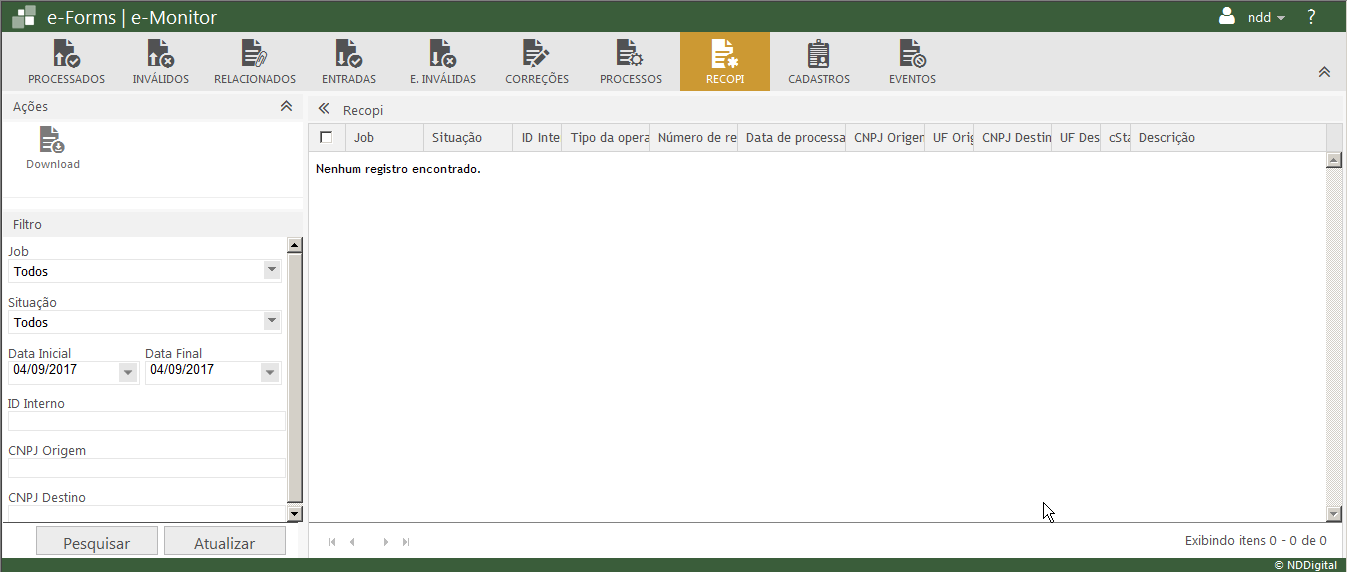 Nesta aba serão apresentados todos os documentos processados com o RECOPI vinculado a NF-e.