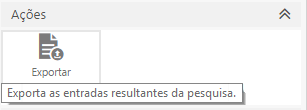 A opção Exportar permite gerar um arquivo no formato CSV com informações dos registros marcados no grid, ou todos os registros pesquisados na consulta.