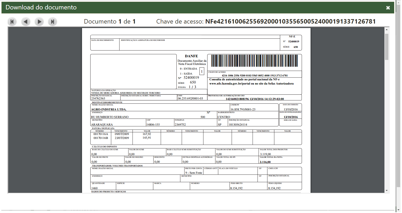 No e-Connector Settings, em Configurações, há a opção Abrir reimpressões pelo e-Monitor. Caso essa opção esteja marcada, ao clicar no botão Imprimir, será aberta uma nova janela, permitindo navegar entre os documentos selecionados, salvá-los e imprimi-los, como demonstra a imagem abaixo: |