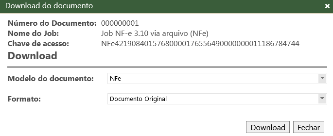 Modelo do documento (somente estará disponível de acordo com os processos de envio presente na base de processamento):