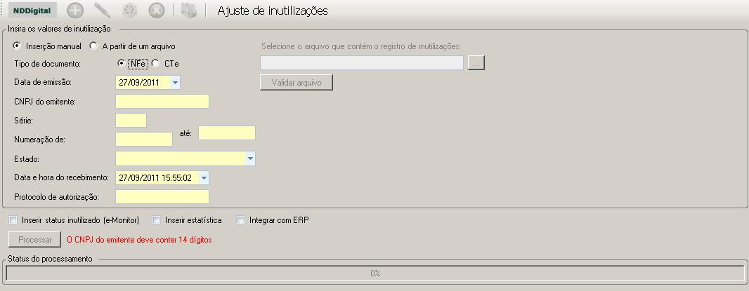 3.A ferramenta tem duas opções de inserção de inutilização, selecione a opção desejada: Inserção manual ou A partir de um arquivo;