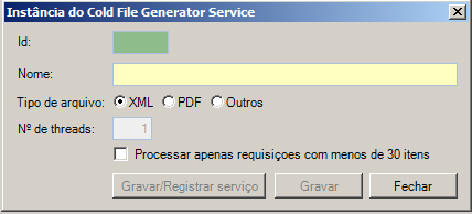 Cadastro das informações em Cold File Generator Service na aba Cold em Configurações Gerais.