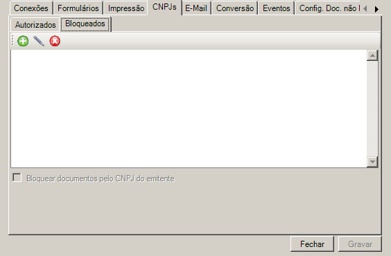 Marcando a opção Bloquear documento pelo CNPJ do emitente será ativado um filtro para que seja bloqueado os documentos de entrada que possuírem os CNPJs dos emitentes cadastrados.
