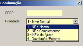 •Desconsiderar manifestação negativa por combinação CFOP e Finalidade: Ao marcar está opção será habilitado para cadastro o GRID "Combinações de CFOP e Finalidade" onde após acionar o botão