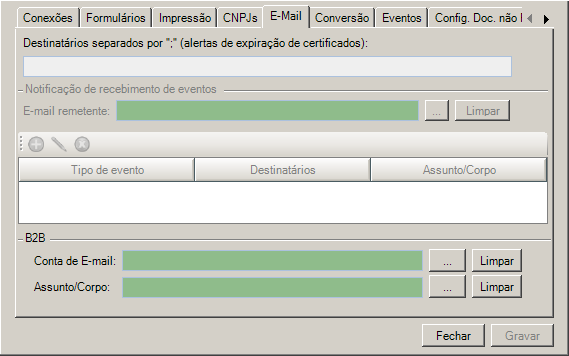 e selecione a conta de e-mail e o assunto/corpo para ser utilizada pelo Job Entry no envio dos documentos de eventos de manifestação do destinatário.