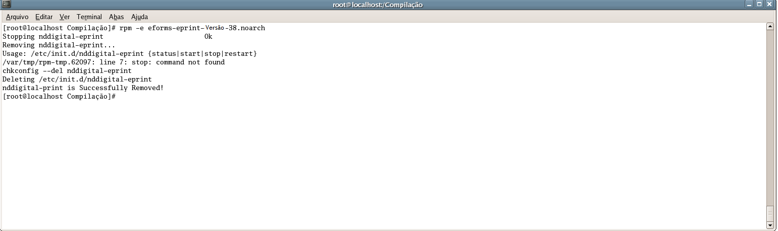 Linux RedHat: rpm -e eforms-eprint-Versão-38.noarch