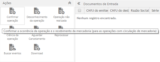 A ação Confirmar operação está disponível para dois processos, confirmação do documento no sistema ou para eventos de manifestação do destinatário.