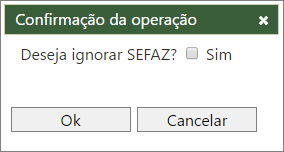 Passo 2: Exibe a tela perguntando se o usuário deseja confirmar os documentos selecionados. Se for necessário ignorar SEFAZ marque a opção Ignorar SEFAZ, esta opção é utilizada quando a SEFAZ responder com falha, onde o processo de entrada do documento não mais verifica a situação do documento na SEFAZ origem.
