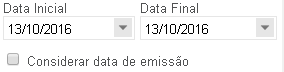 Para filtrar documentos pela data em que foram emitidos, marcar a opção Considerar data de emissão, antes de efetuar a pesquisa.