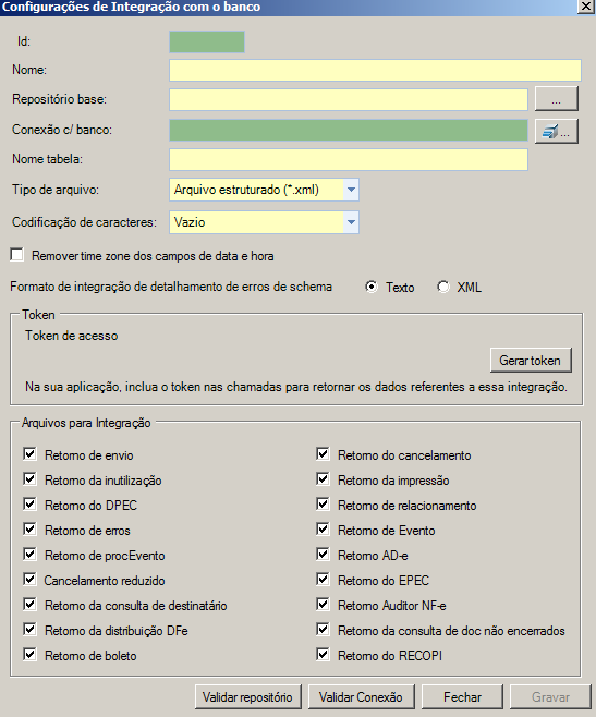d.O Repositório base é o local onde serão retornadas as notas, caso não seja possível estabelecer conexão com o banco de dados. Você pode selecioná-lo através do botão