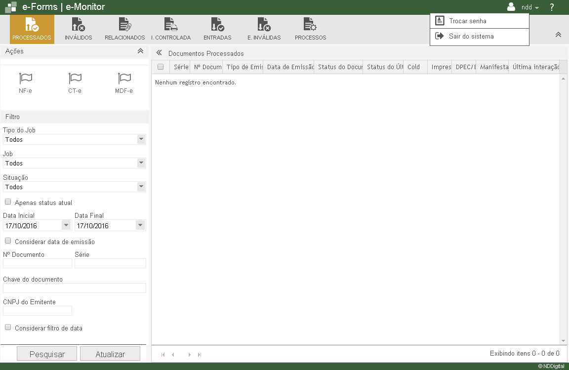 A opção de usuário(s)/grupo(s) está disponível para o e-monitor o mesmo pode ser acessado efetuando um clique no nome do usuário ou grupo que efetuou login no módulo utilizado.