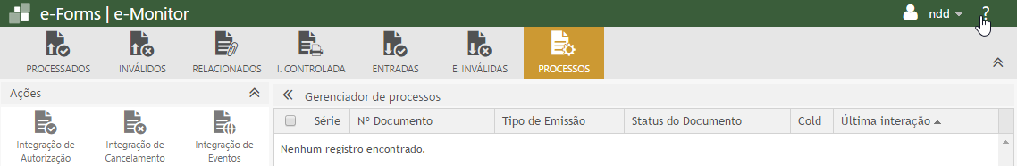 A opção de ajuda está disponível para o e-Monitor o mesmo pode ser acessado efetuando um clique no simbolo de ?.