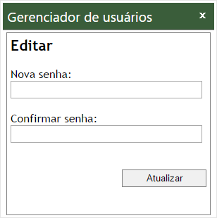 . Será apresentada a mensagem "Senha atualizada com sucesso" e ao clicar em OK a tela de "Gerenciador de usuários", será fechada.