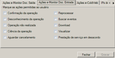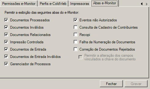 d.Marque as ações desejadas nas abas citadas acima referente ao módulo e-Monitor que estarão disponíveis ao usuário.