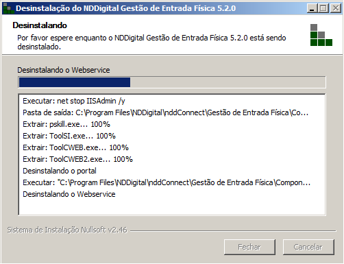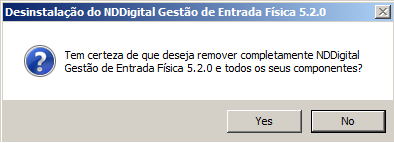 Caso tenha escolhido a opção Sim, aguarde enquanto o nddConnect Gestão de Entrada Física é desinstalado.
