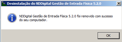 A tela a seguir, demonstra que o nddConnect Gestão de Entrada Física foi removido com sucesso, clique em OK para finalizar.