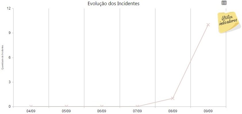 Toda informação apresentada neste gráfico é gerada a partir da execução de processos agendados que ocorrem em períodos configurados, logo, na geração do gráfico podem existir informações ainda não contabilizadas, aguardando que o processo seja executado novamente para totalização. No gráfico ainda é disponibilizado no canto superior direito, um atalho para a Dashboard de Incidentes. |