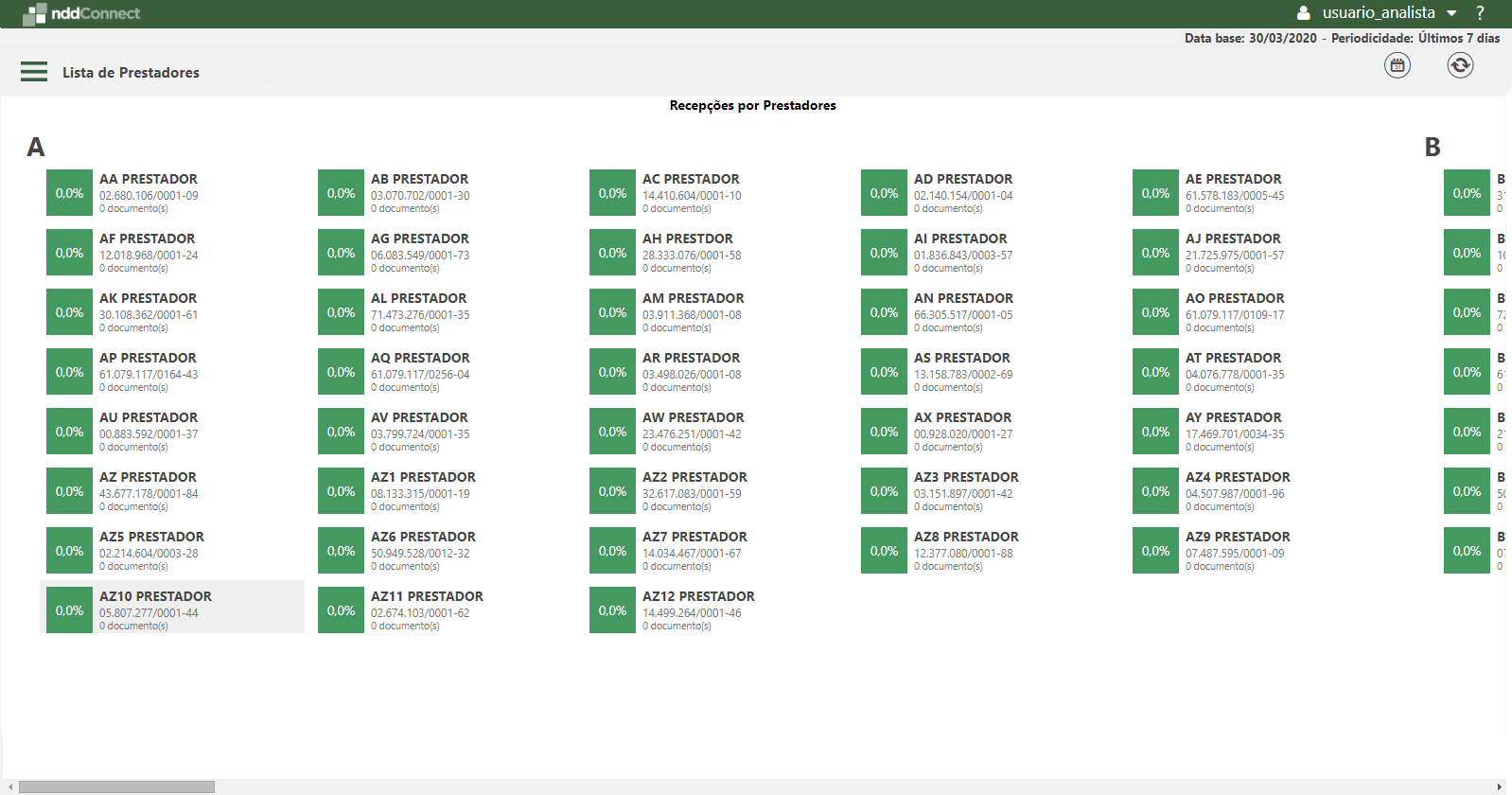 Os prestadores que tiveram documentos enviados para as empresas permissionadas aos usuários, são mostrados nesta visão, com o objetivo de acessar diretamente os dados específicos de determinado fornecedor.