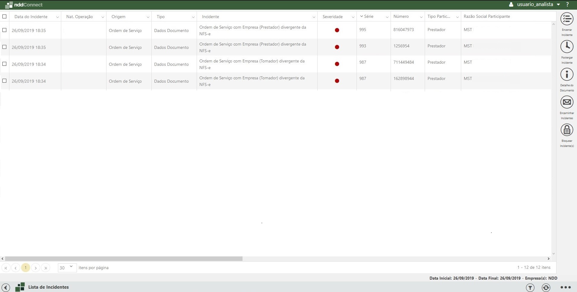 Ordem de Serviço relaciona pendências e divergências no processo de comparação entre os documentos recepcionados eletronicamente pelas empresas e as informações adquiridas através da Ordem de Serviço, disponibilizada pelo ERP.