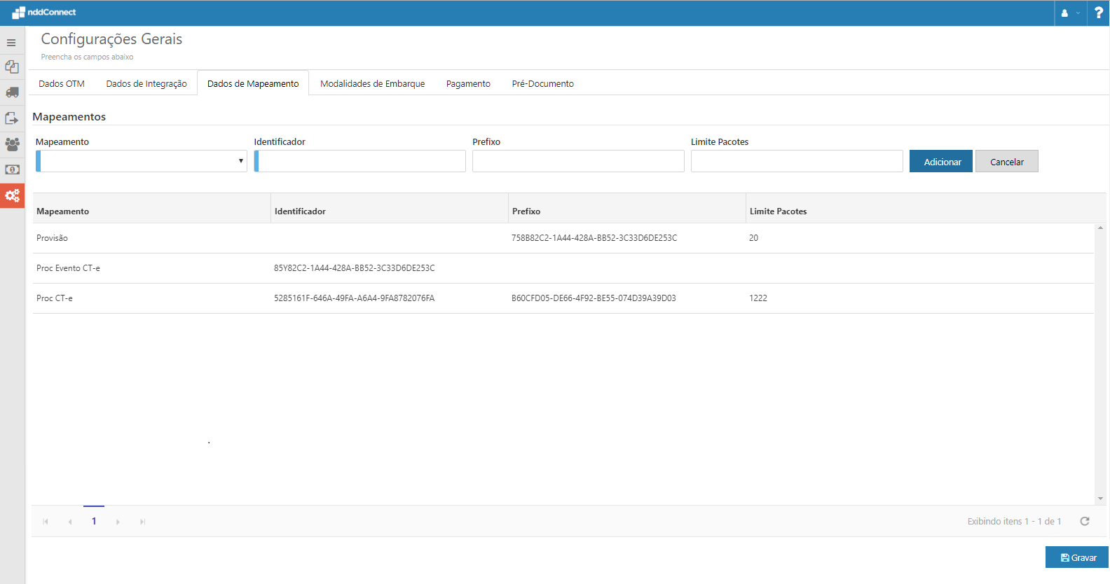 •Mapeamento - Permite selecionar os mapeamentos disponíveis para o Embarcador;