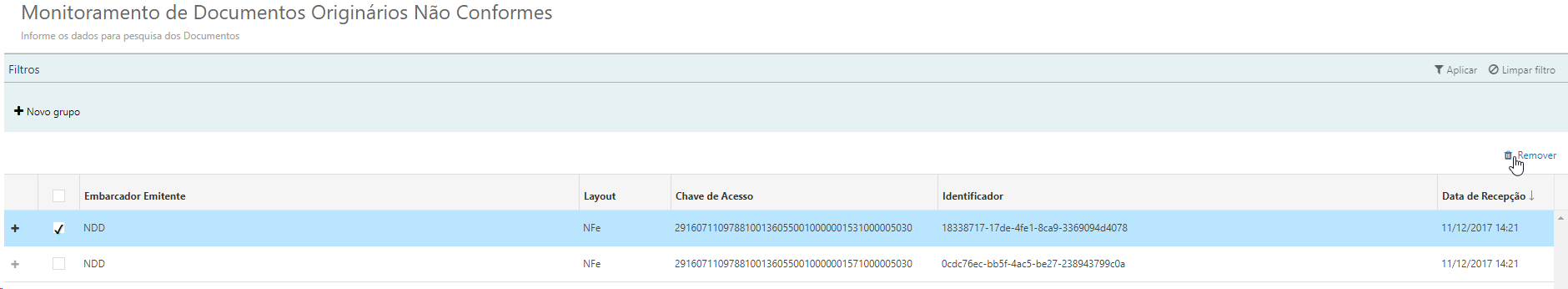 Após a remoção, é possível corrigir o documento não conforme e reprocessá-lo.