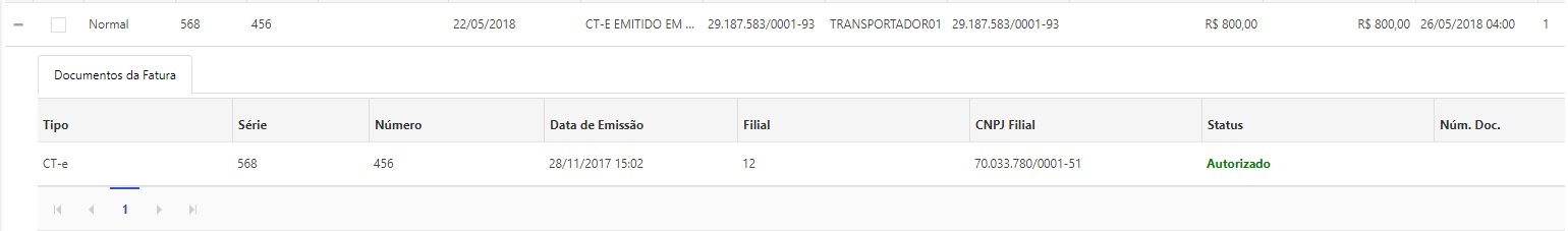 •Transportador: Nome de exibição do transportador relacionado ao documento;