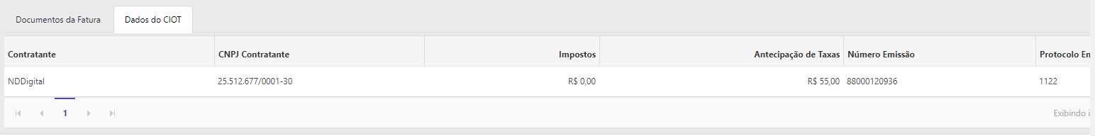 Na aba Dados do CIOT serão apresentados os dados referente ao CIOT vinculado a fatura em questão: