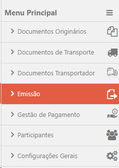 Para acessar a área de Emissão, localize Menu Principal > Emissão.