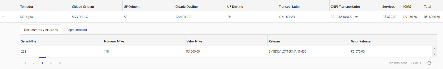 •Documentos Vinculados: É apresentados todos os documentos vinculados.