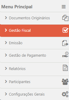 Para acessar a área de Documentos de Transporte, localize Menu Principal > Gestão Fiscal.
