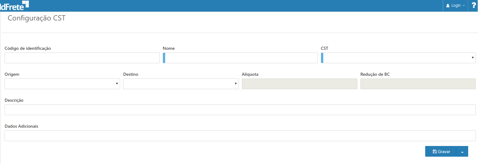 Na tela apresentada informe o Código de identificação, Nome e selecione o CST desejado, não é obrigatório informar Origem e Destino, mas informando um deles o outro campo se tornam obrigatório, não é obrigatório informar a Descrição e os Dados Adicionais (são utilizados pelo ERP para integrar informações com o OTM).