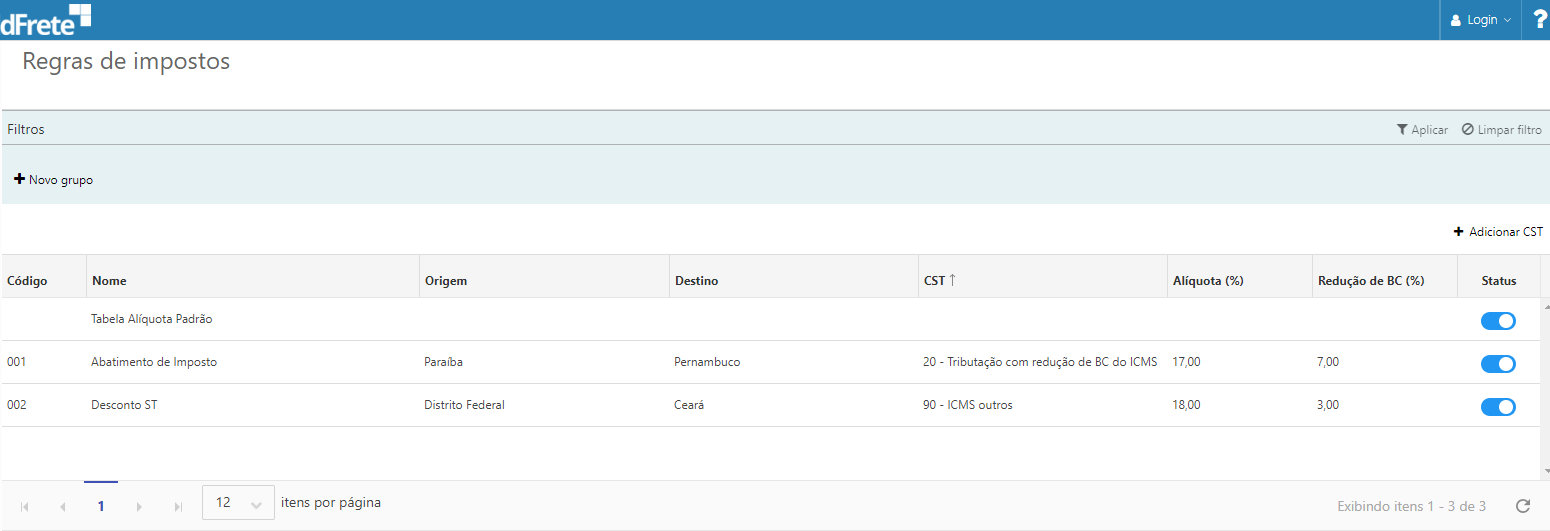Regras de Impostos