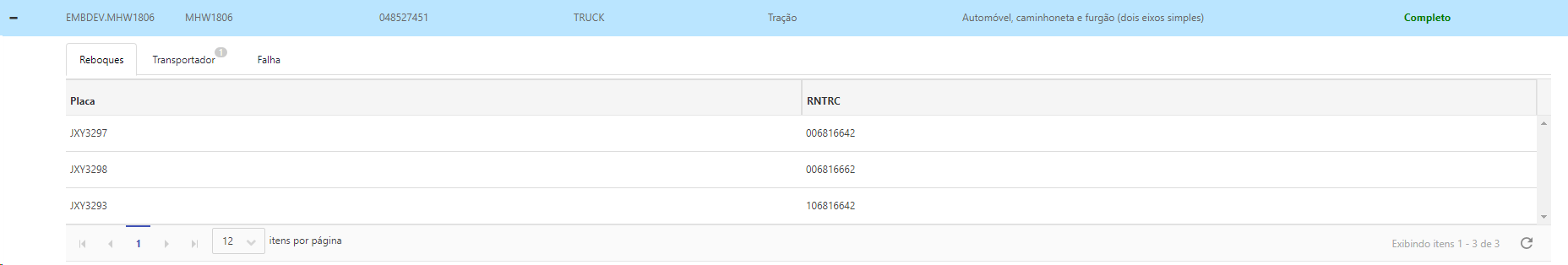 Nos detalhes dos veículos é possível visualizar o transportador vinculado ao mesmo.