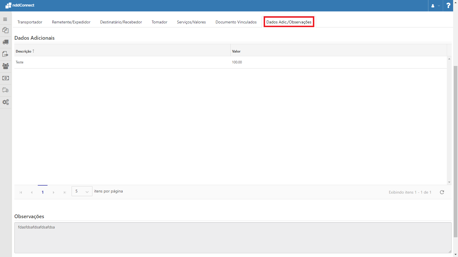 Na sétima aba é possível visualizar os dados referentes a Dados Adic./Observações