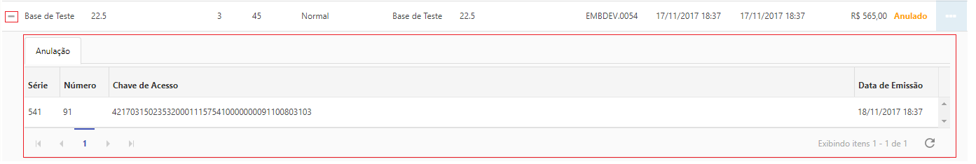 Anulação - Para o caso de CT-e anulado, exibe a série, número, chave de acesso e data de emissão do documento utilizado para anulação do CT-e.