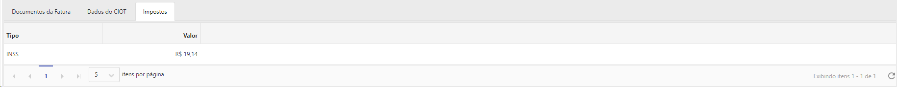 •Tipo: Tipo do documento que compõe a fatura (CT-e/NFS-e/Nota de débito ou RPA).