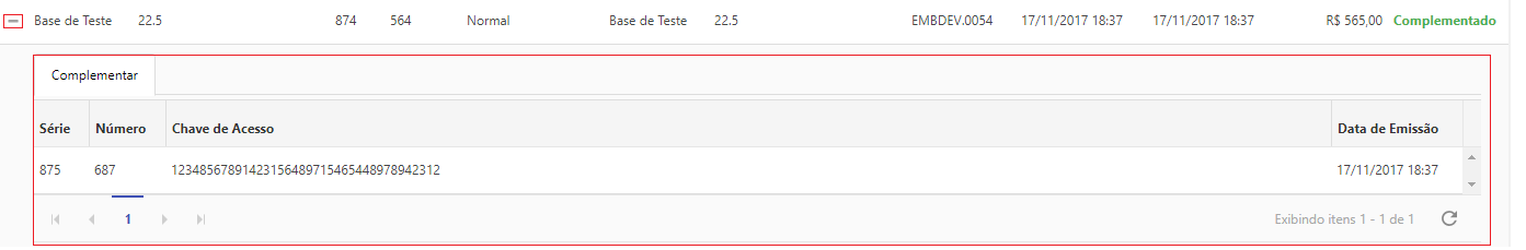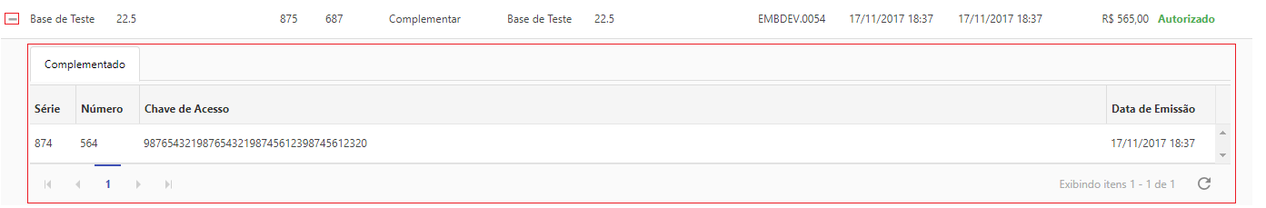 •Complementado - Para o CT-e do tipo complementar, exibe a série, número, chave de acesso e data de emissão do CT-e normal que foi complementado.