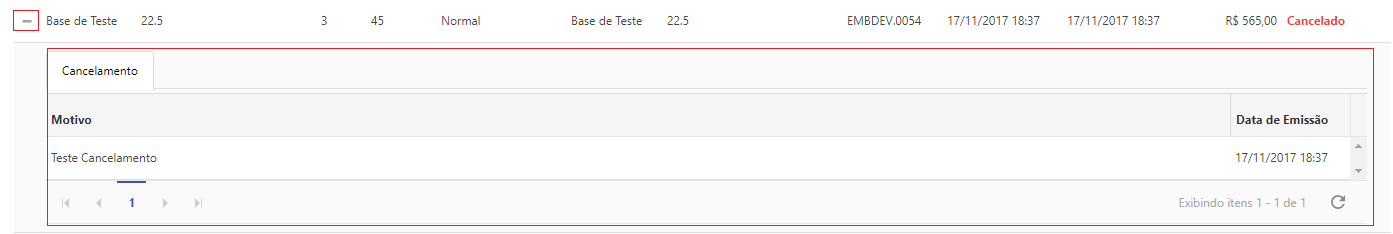 •Cancelamento - Para o caso de CT-e cancelado, exibe o motivo do cancelamento e data de emissão do evento do documento utilizado para o cancelamento do CT-e.