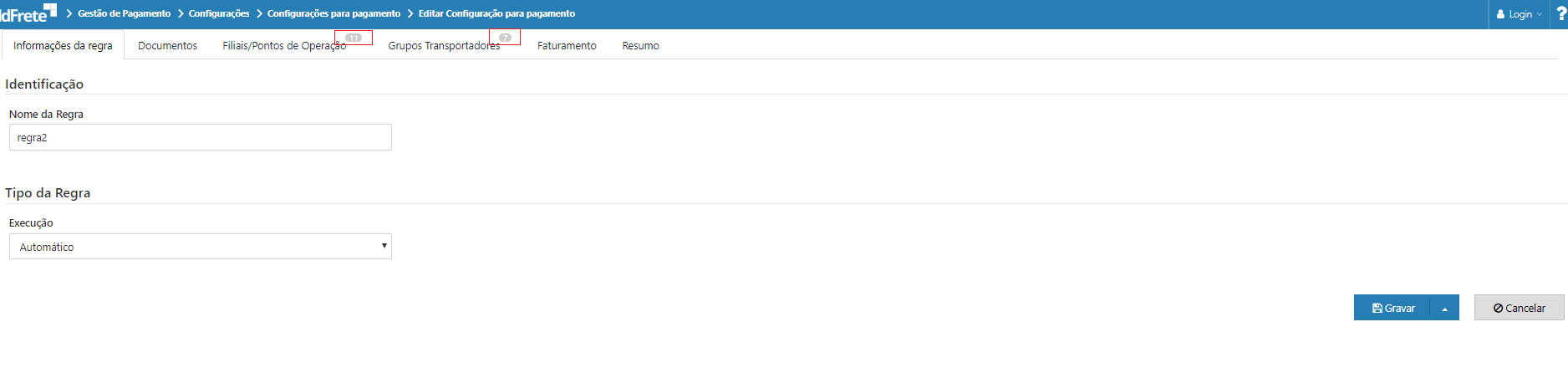 Configuração de Regras de Pagamento - Grupos Transportadores |