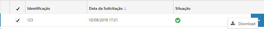 Solicitações válidas habilitarão a opção de download através do menu de contexto.
