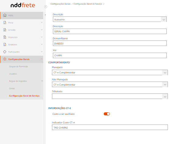 Custo a ser auditado: ao habilitar este recurso o Serviço será conciliado com o componente/custo do CT-e, com isso, a descrição do campo abaixo deverá ser preenchida corretamente.