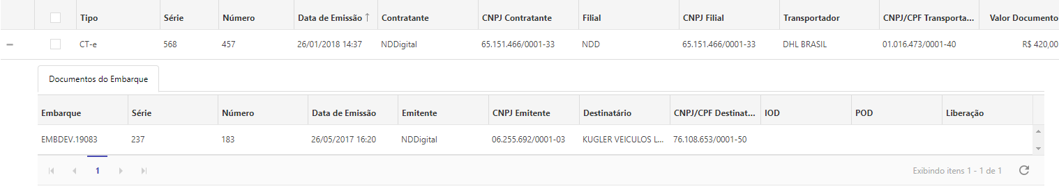 •Transportador: Nome de exibição do transportador relacionado ao documento;