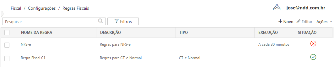 Para utilizar as funcionalidades das Regras Fiscais , acesse: Menu Principal>Gestão Fiscal>Configurações>Regras Fiscais