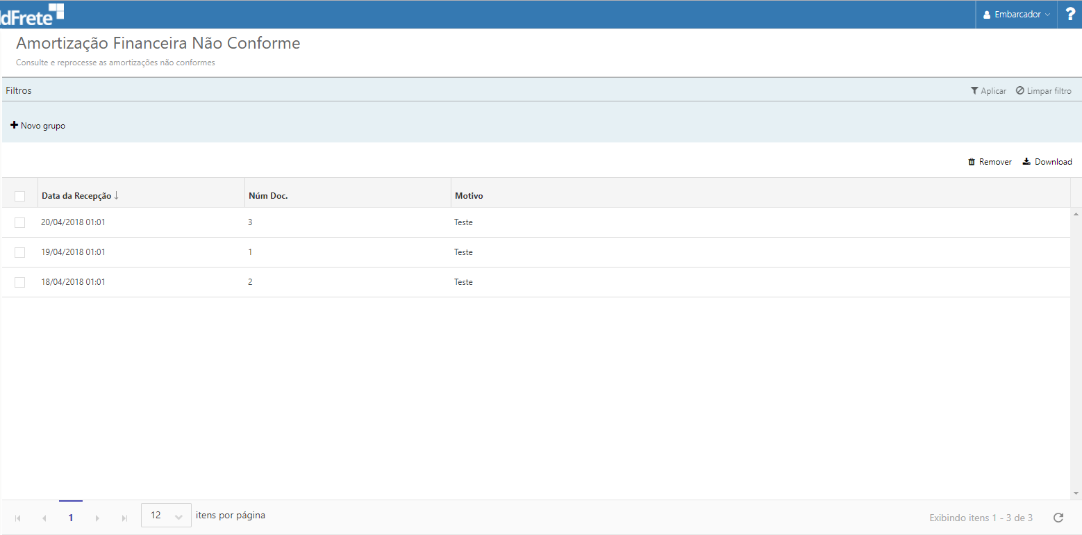 Motivo - Exibe o motivo da não conformidade da amortização.