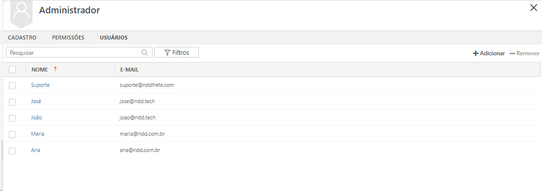 Nessa tela é possível cadastrar, editar e visualizar os Grupos de Permissão.