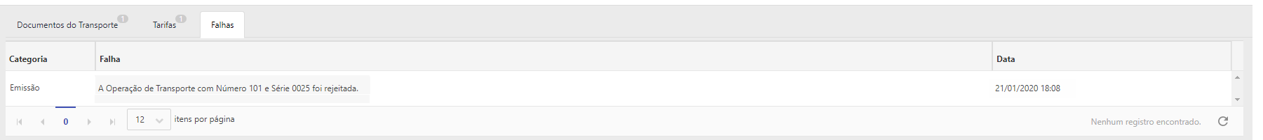 , é possível visualizar nessa aba a categoria, o motivo de ter ocorrido a falha, bem como a data do ocorrido.